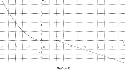 De igual forma se analizan los siguientes valores f(½) = 2, porque ½ ∈ [ 0, 1), f(5) = -5 + 2 = 3, porque 5 ∈ [ 1, +∞ ). La Gráfica 11 es la gráfica de la función f.