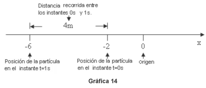 La distancia recorrida por la partícula, entre los tiempos dados, es de 4m. La gráfica 14 ilustra dicha distancia.