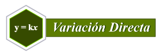 Se dice que una variable y varía directamente ó es proporcional a otra variable x si existe una constante de proporcionalidad k, tal que y=kx. La gráfica de esta ecuación es una línea recta con pendiente k que pasa por el origen.